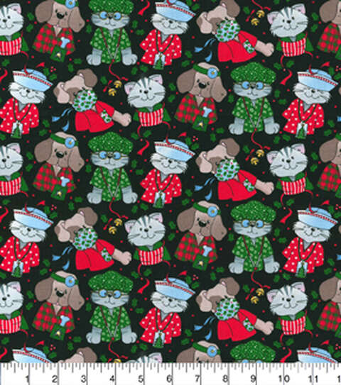 Fabric Traditions Christmas Dog and Cats in Scrubs 100% Cotton Price per Yard