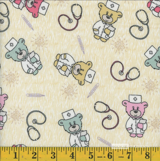 Mook Fabrics Flannel Doctor Teddy Blue Baby 100% Cotton Price per Yard