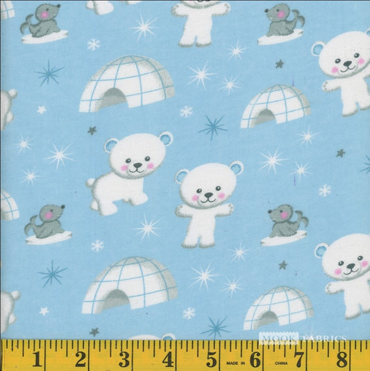 Mook Fabrics Flannel Igloo Bears Seals Blue Baby 100% Cotton Price per Yard