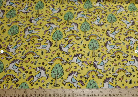 Mook Fabrics Flannel Unicorn Yellow Baby 100% Cotton Price per Yard