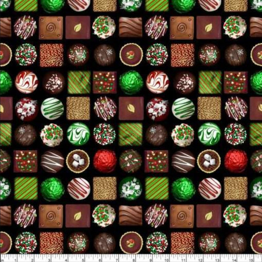 Benartex Christmas Confections On Black 100% Cotton Fabric Price per Yard