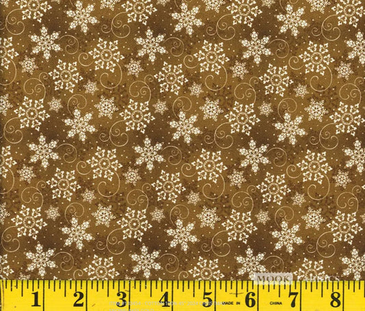 Mook Fabrics Christmas Snowflakes on Blended Gold 100% Cotton Fabric By the yard