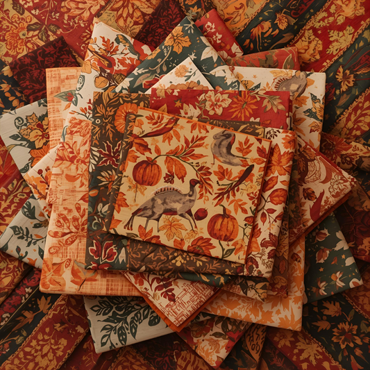 Thanksgiving 8 Piece Fat Quarter Set 18" x 21" Mystery Bundle Precut