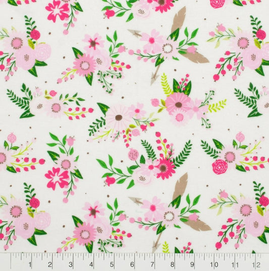 3 Flannel Fat Quarters Wild and Free Little Feet Boutique Pink White 18" x 21" Baby