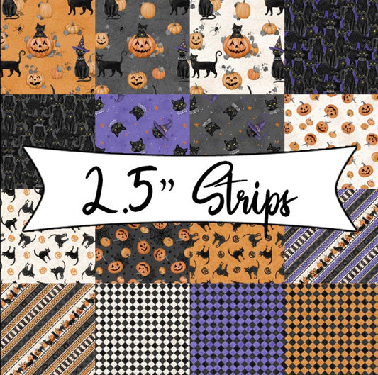 40 2.5 Inch Strips Meow-gical Nights Wilmington Prints 100% Cotton Halloween