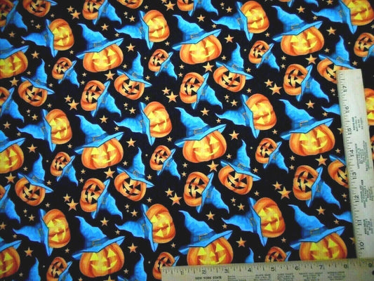 Halloween Smiling Pumpkins Jack o Lantern on Black 100% Cotton