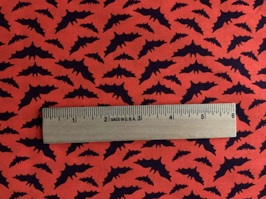 Halloween Flying Bats on Dark Orange 100% Cotton Fabric