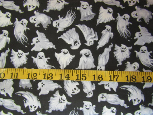 Halloween Spooky Flying Ghosts on Black 100% Cotton Fabric Price Per Yard