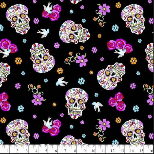 David Textiles Halloween Calaveras Day of the Dead with Glitter 100% Cotton Fabric Price per Yard