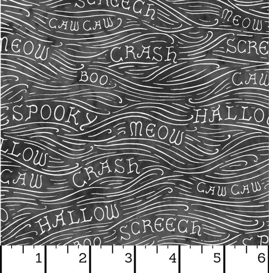 Maywood Studio Halloween Spooky Hollow Wavy Text on Black 100% Cotton By the Yard