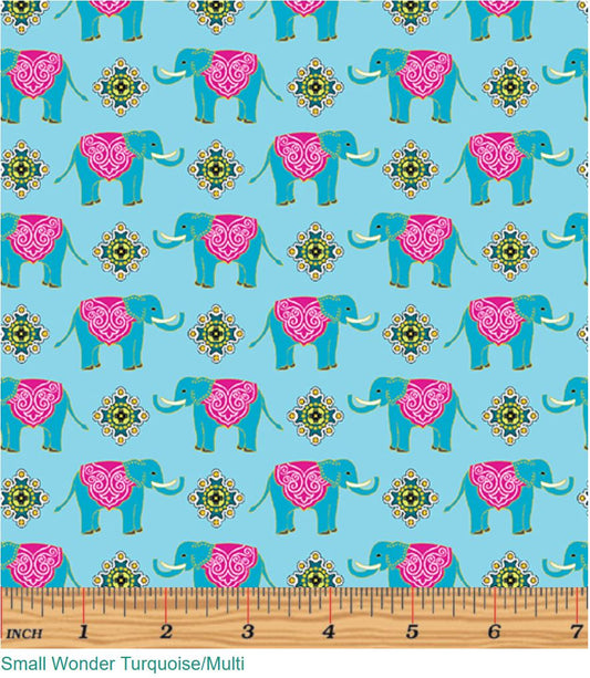 Benartex Novelty Small Elephants on Turquoise Metallic Benartex 100% Cotton