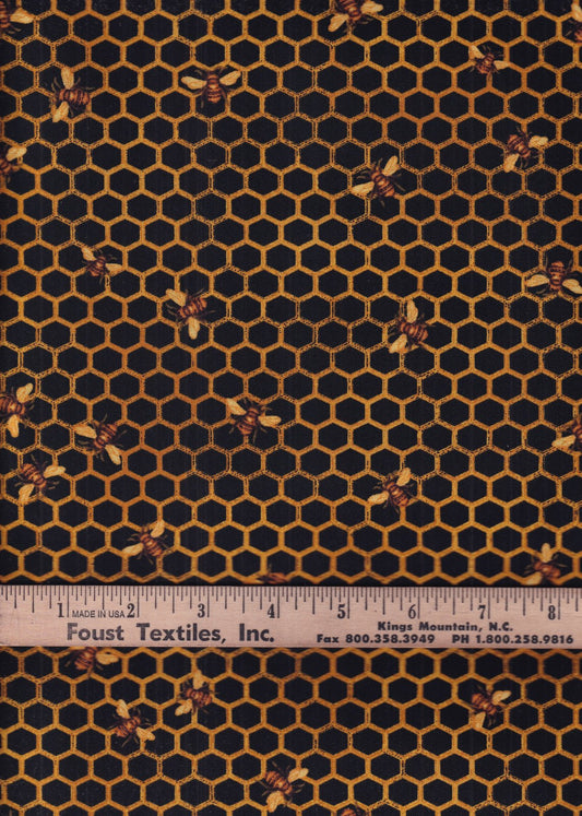 Hi Fashion Bees On Honeycomb Novelty 100% Cotton Price per Yard