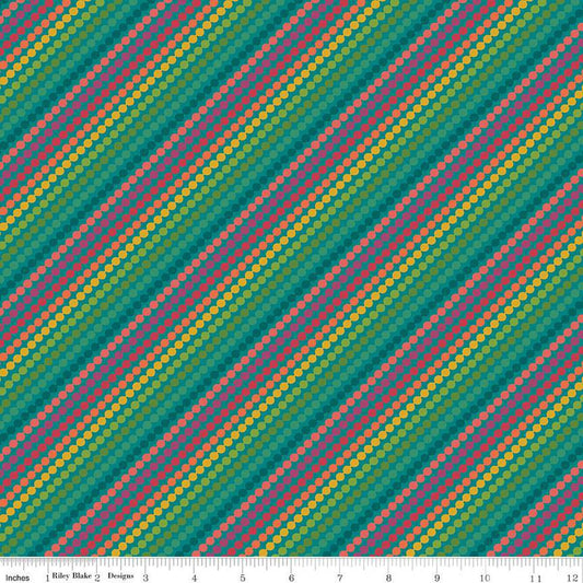 Riley Blake Market Street Rainbow Stripes Teal Novelty