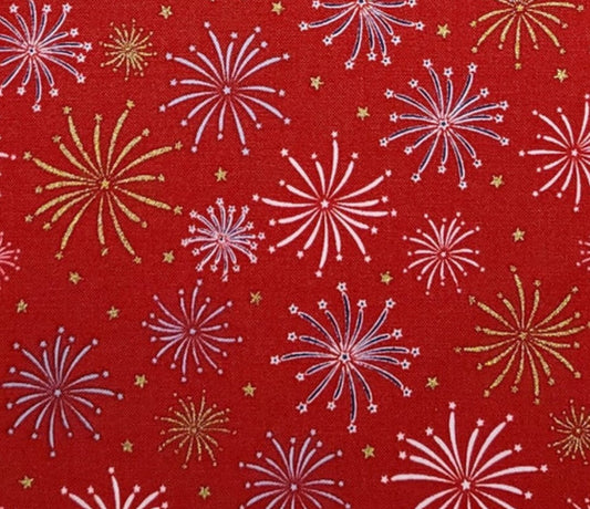 Riley Black Patriotic Fireworks on Red 100% Cotton Price per Yard
