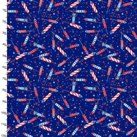 3 Wishes Fabric Patriotic Victory Big Bang Firecrackers on Navy Price per Yard