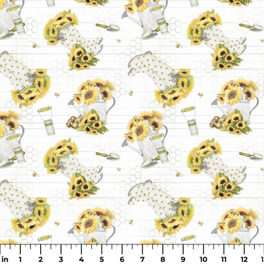 Spring Creative Sunflower Garden Signs 100% Cotton By the Yard Novelty
