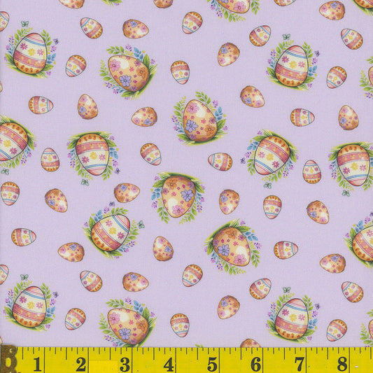 Mook Fabrics Hoppy Easter Eggs Lavender 100% Cotton Price per Yard