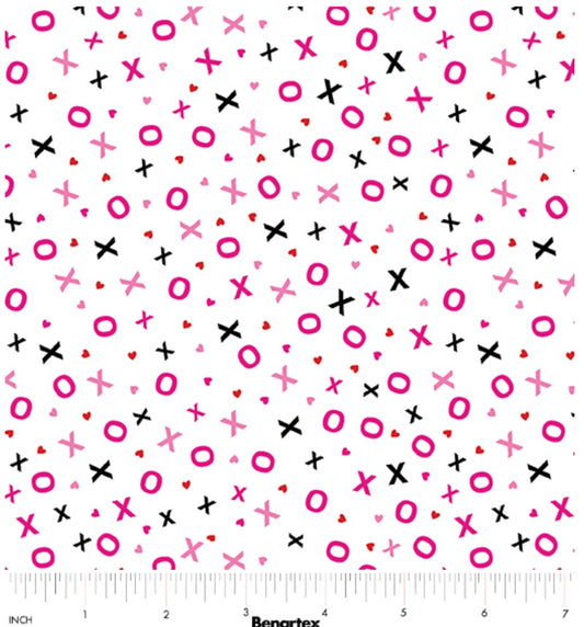 Benartex Valentine Hugs & Kisses White 100% Cotton Price per Yard