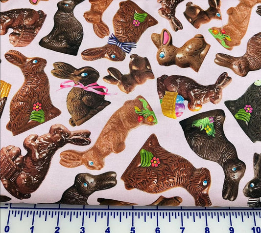 Timeless Treasures Easter Chocolate Bunnies Pink 100% Cotton