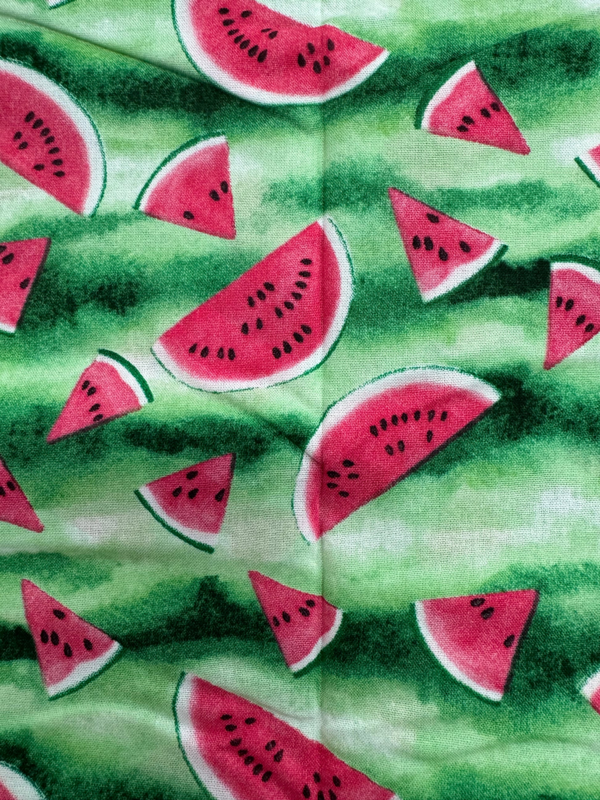 Infuse your next project with magic using this 1-yard precut from 3 Wishes Fabric! Featuring watermelon slices on a marbled green background, this fabric will be a fun addition to any quilt, tote, or pillow project. 100% cotton. This precut measures approximately 36" x 43".