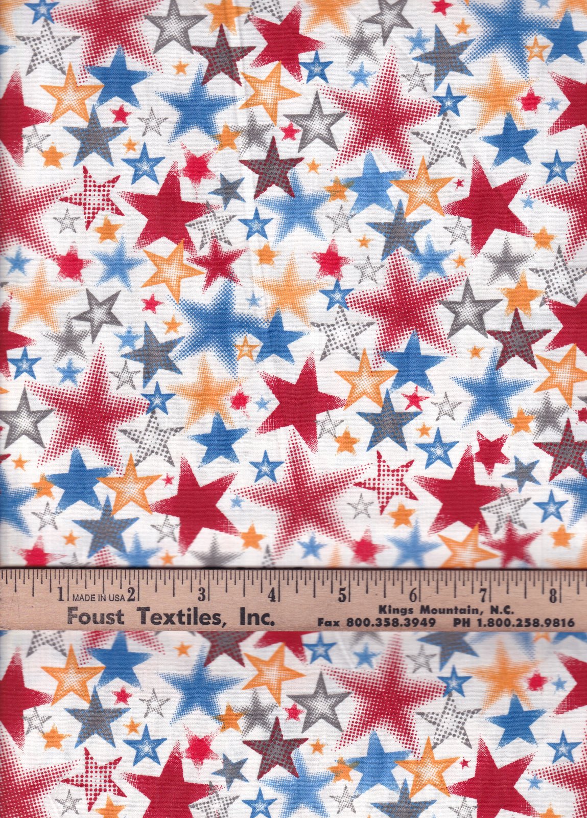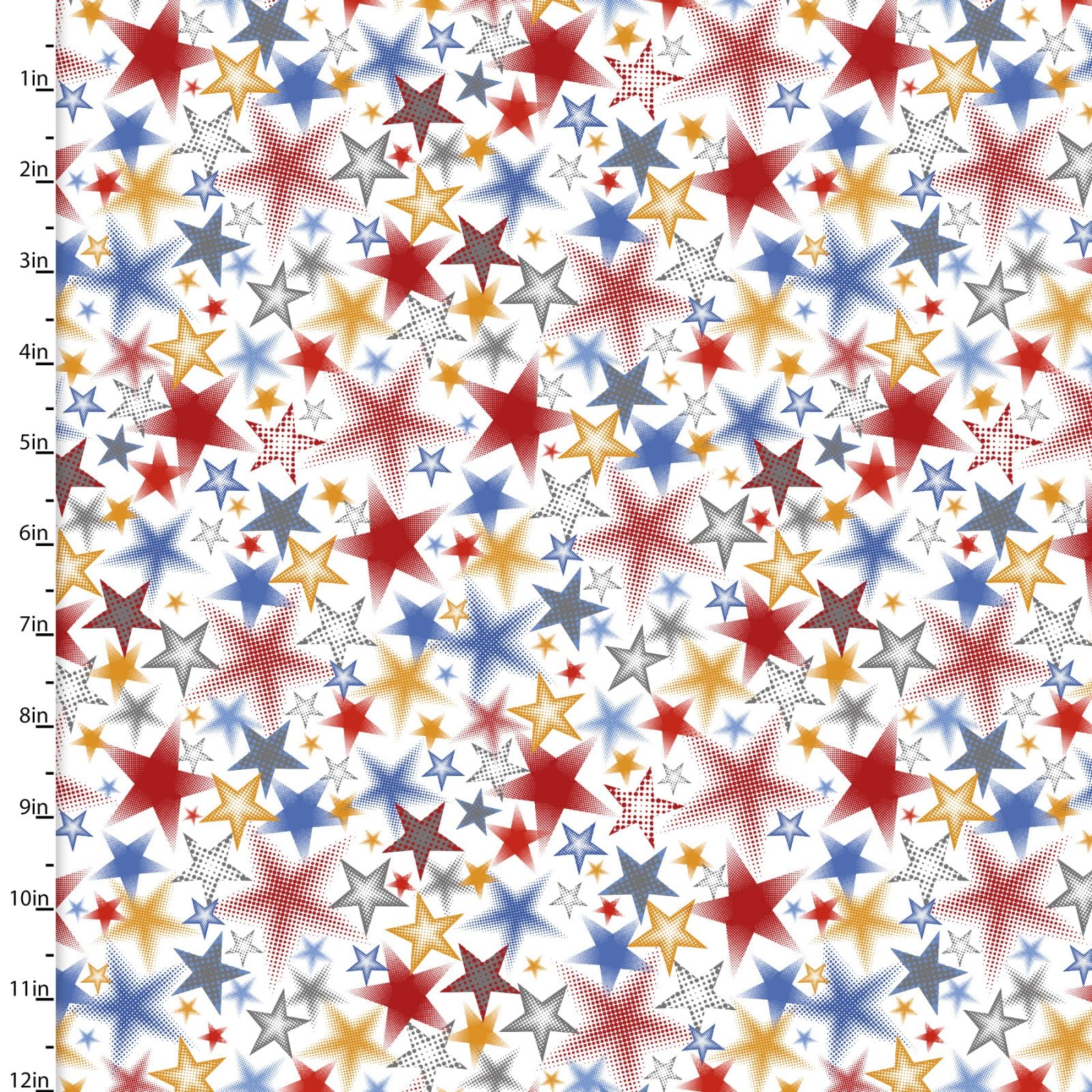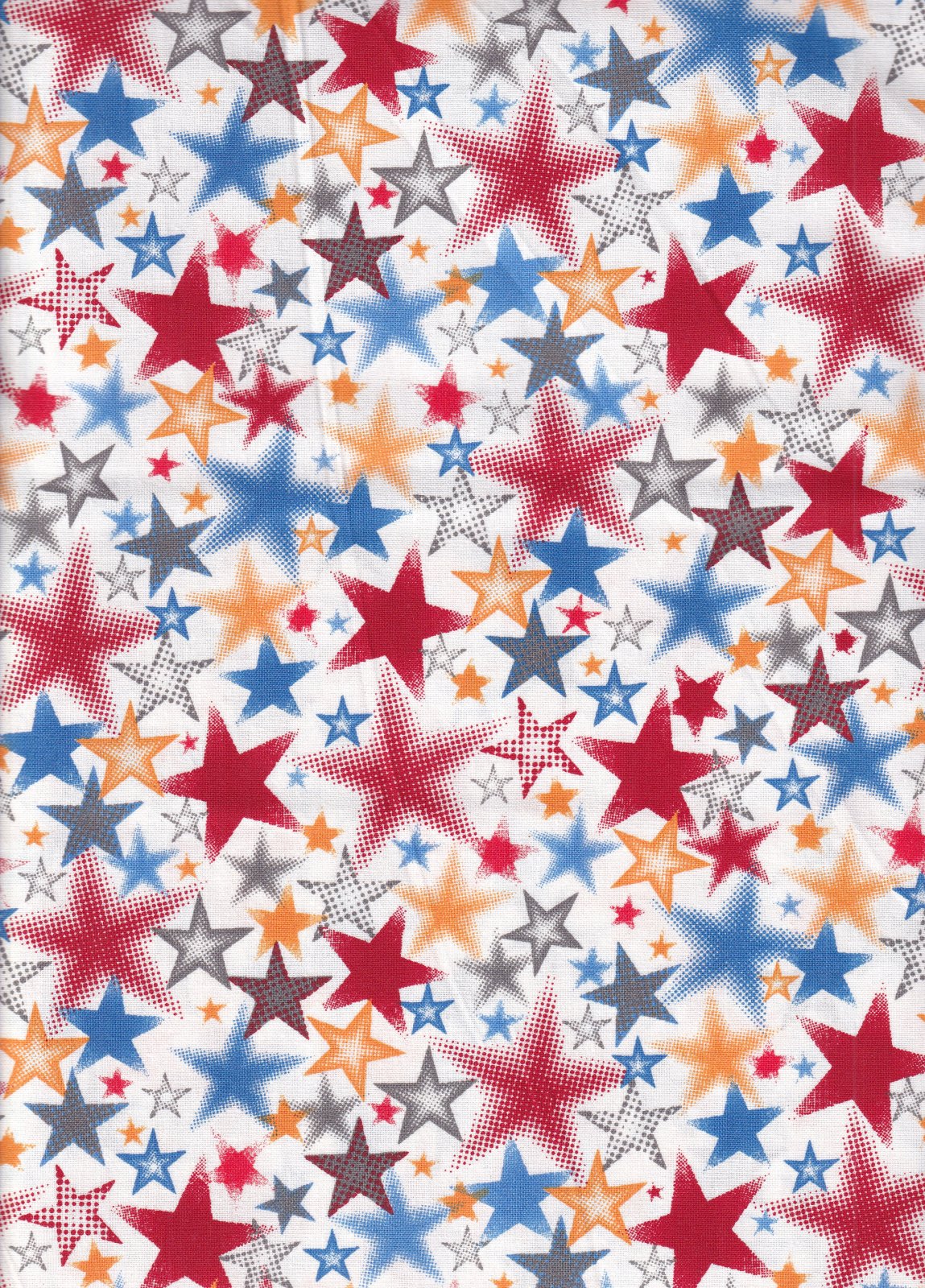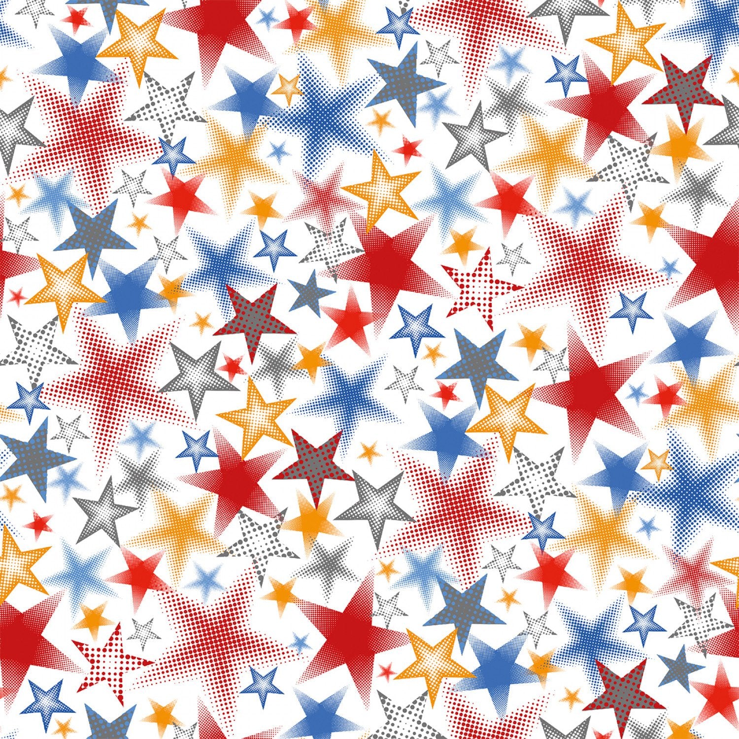 3 WISHES Burger Bar Bunch O' Stars White Fabric** Unleash your creativity with the vibrant and versatile 3 WISHES Burger Bar Bunch O' Stars White fabric. Perfect for quilting, crafts, or home decor, this fabric adds a lively pop of color to any project. Featuring a dynamic starry design in bold red, blue, and yellow hues against a crisp white background, it’s ideal for those looking to infuse energy and whimsy into their creative endeavors.