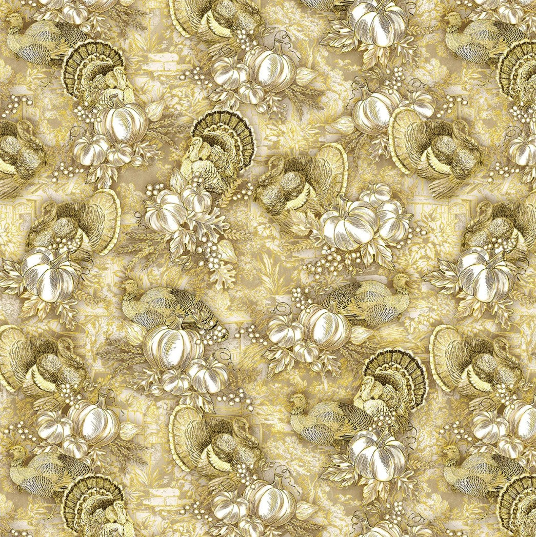 Benartex Thanksgiving Harvest Turkeys Toile Cream