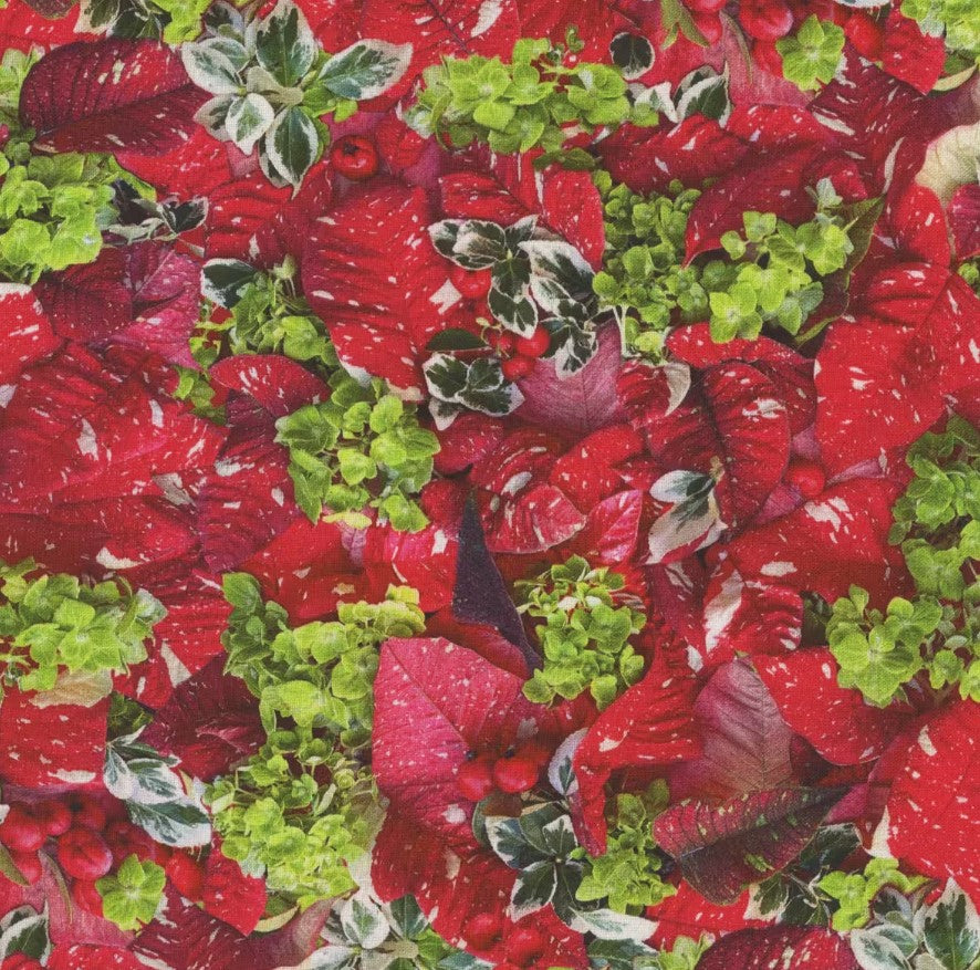 Reflect in the elegance of Hand Picked: Christmas, the latest collection of photorealistic floral collages by photographer, Nicholas Lapp. Hand Picked: Christmas uses a classic color combination of red, white, and green to exemplify traditional Christmas tablescapes and décor. Inspired by real Pine needles, poinsettia petals, ivy and roses, these fabric floral arrangements create a dimensional experience that will add a uniqueness to your projects. Create table runners, quilts, special napkins, and heirlooms that to use for years to come. Combine the textured solids with the dramatic photorealistic designs and treat yourself to an amazing project.