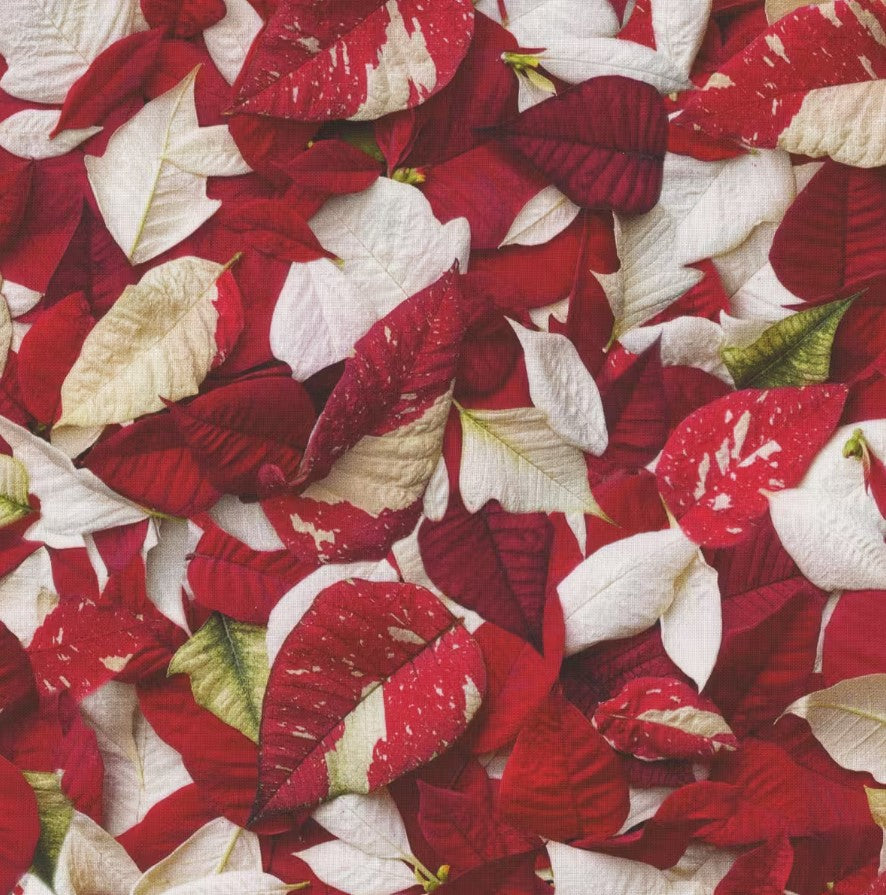 Reflect in the elegance of Hand Picked: Christmas, the latest collection of photorealistic floral collages by photographer, Nicholas Lapp. Hand Picked: Christmas uses a classic color combination of red, white, and green to exemplify traditional Christmas tablescapes and décor. Inspired by real Pine needles, poinsettia petals, ivy and roses, these fabric floral arrangements create a dimensional experience that will add a uniqueness to your projects. Create table runners, quilts, special napkins, and heirlooms that to use for years to come. Combine the textured solids with the dramatic photorealistic designs and treat yourself to an amazing project.