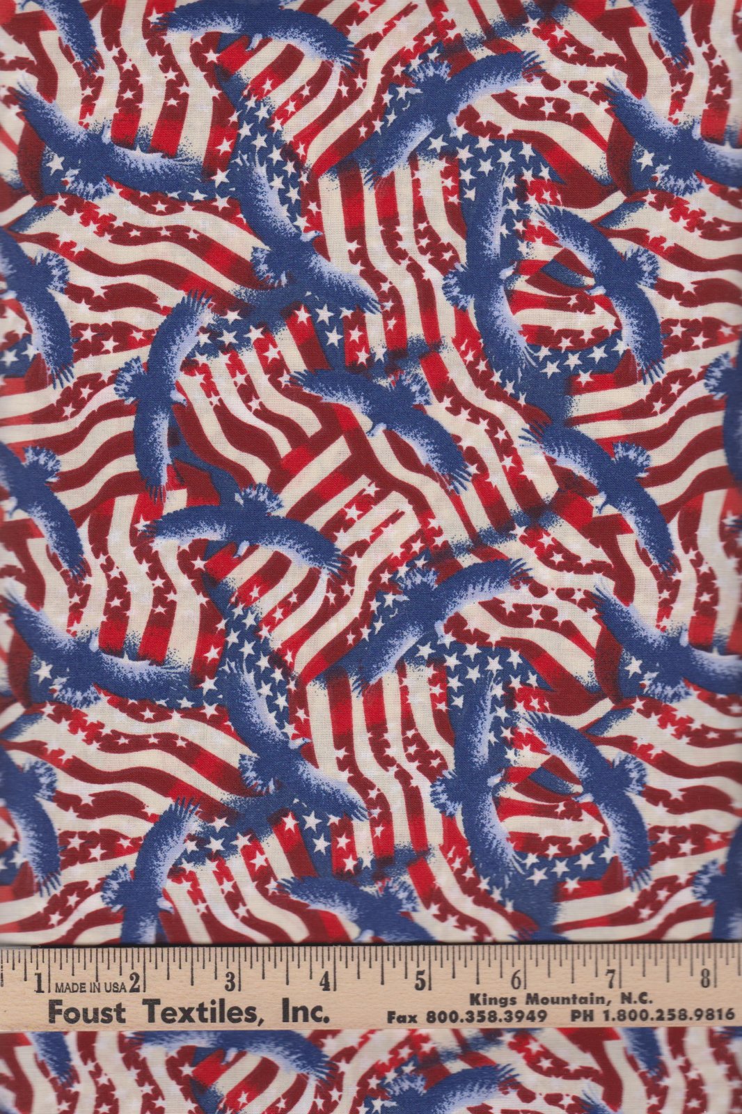 Foust Textiles Made In The USA Red White and Blue Stars and Stripes Eagles Patriotic Price per Yard