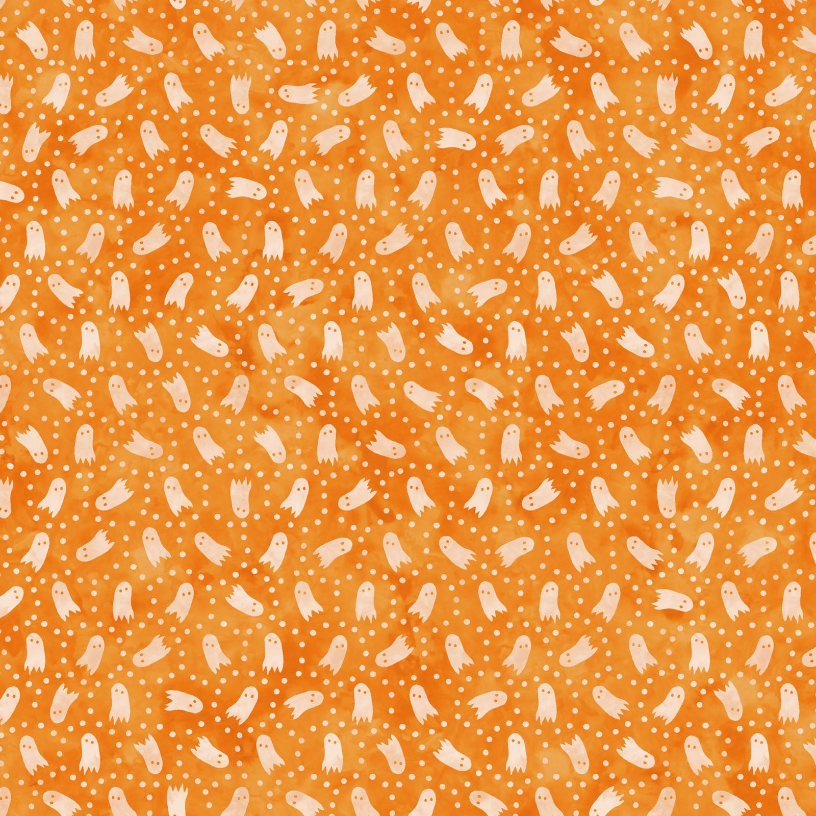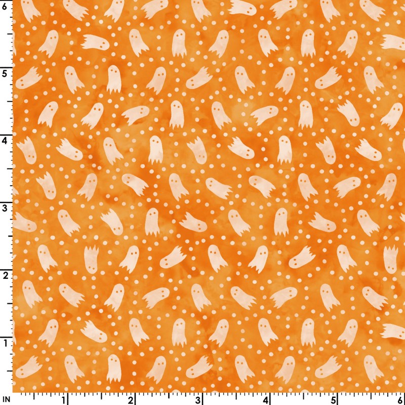 Maywood Studio Halloween Spooky Hollow Ghosts on Orange with Dots 100% Cottwith Fabric By the Yard