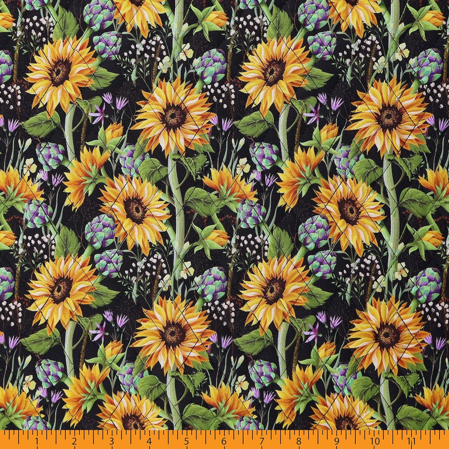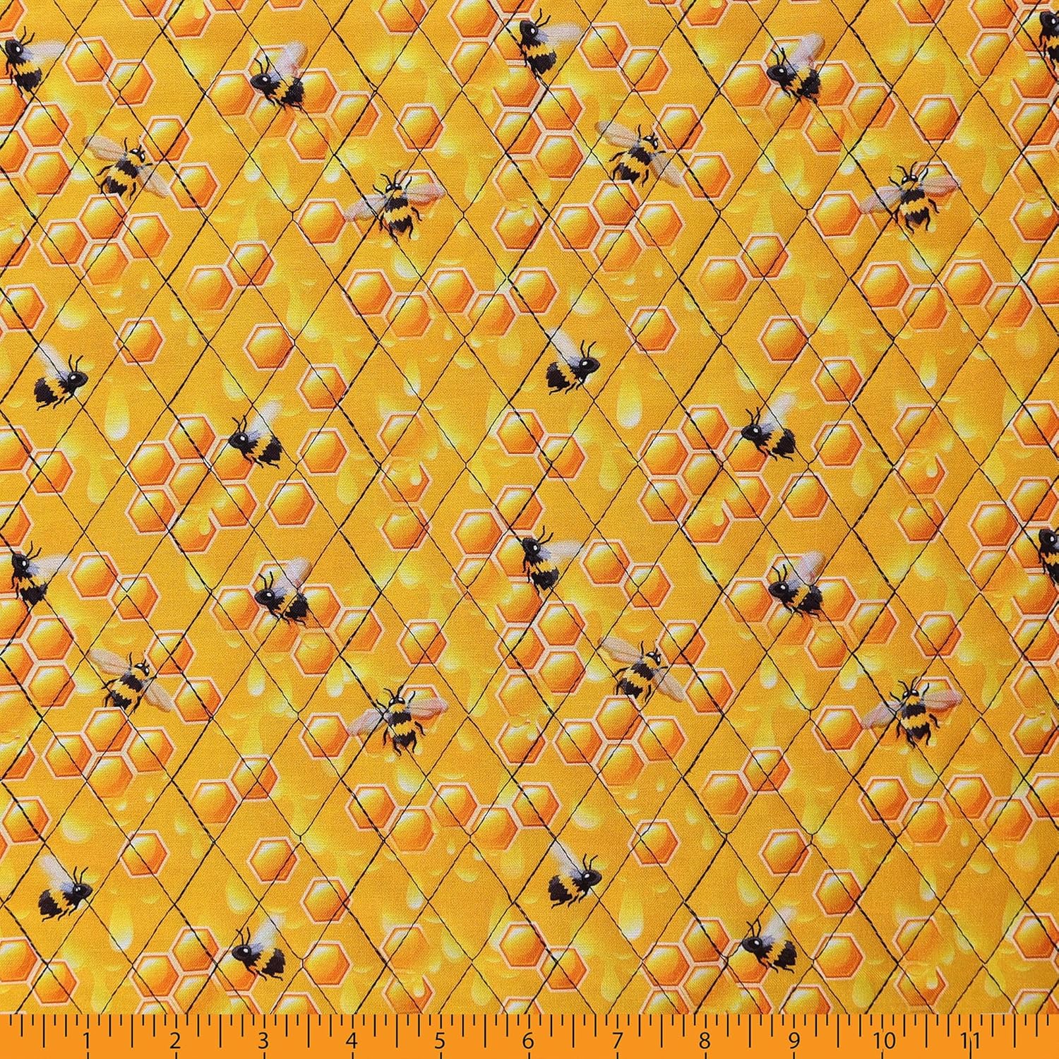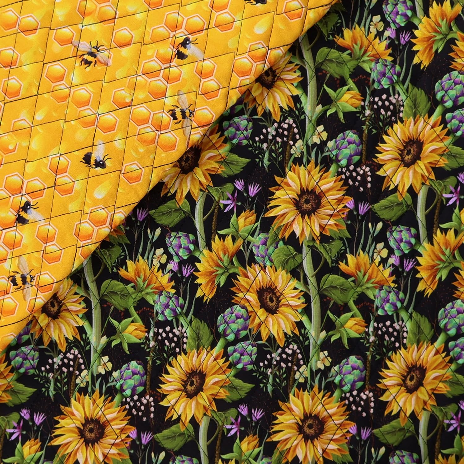 Mook Fabrics Double Faced Prequilted Sunflower Bees Honeycomb By the Yard Novelty