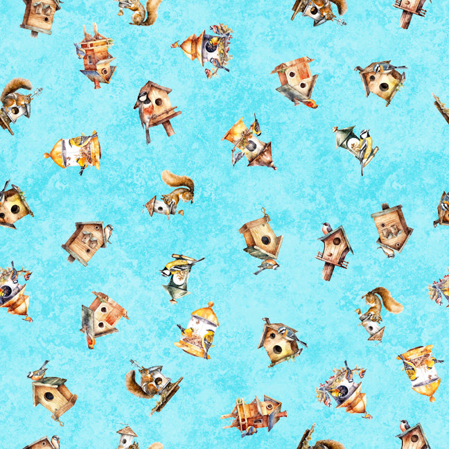 Quilting Treasures Easter Birdsong Birdhouse Toss on Aqua