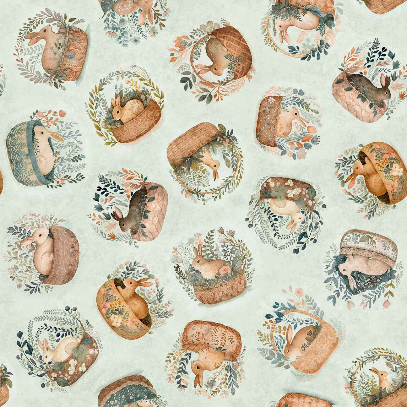 Quilting Treasures Easter Cotton Tails Rabbit & Basket Toss on Sage