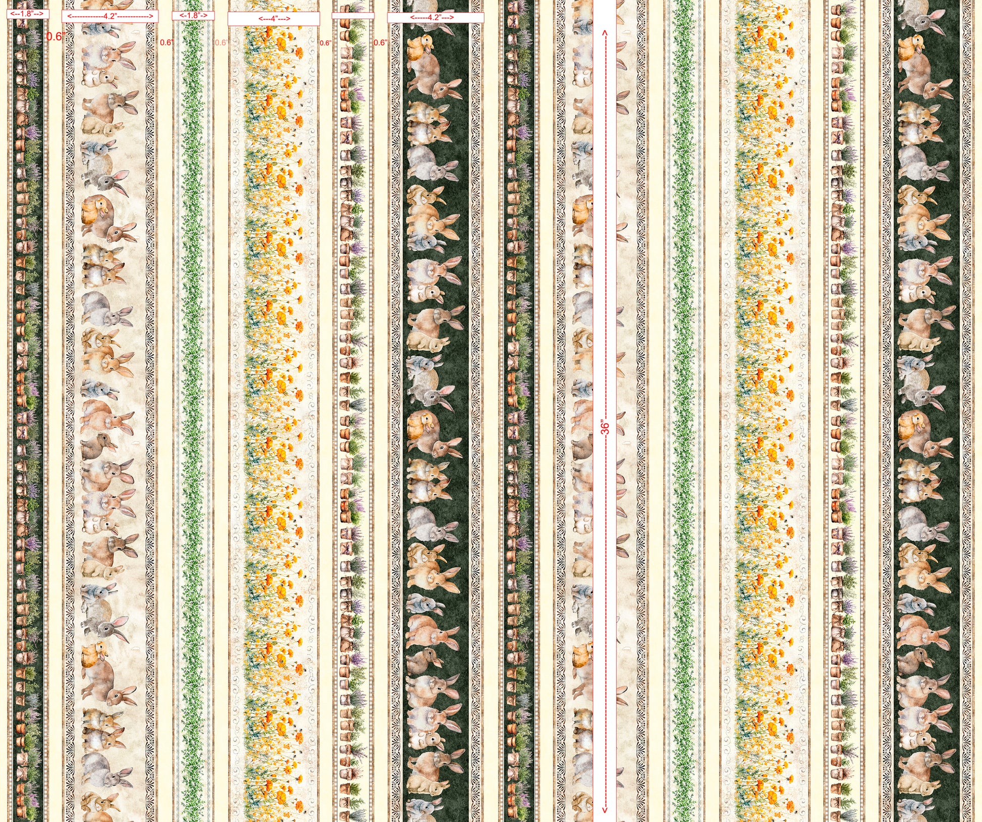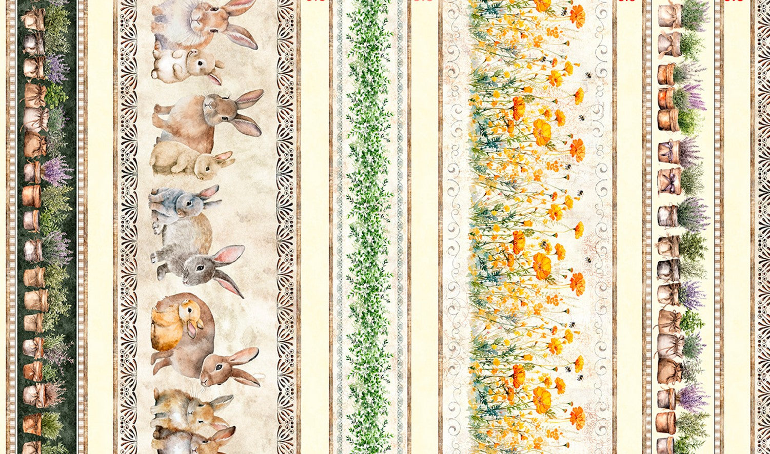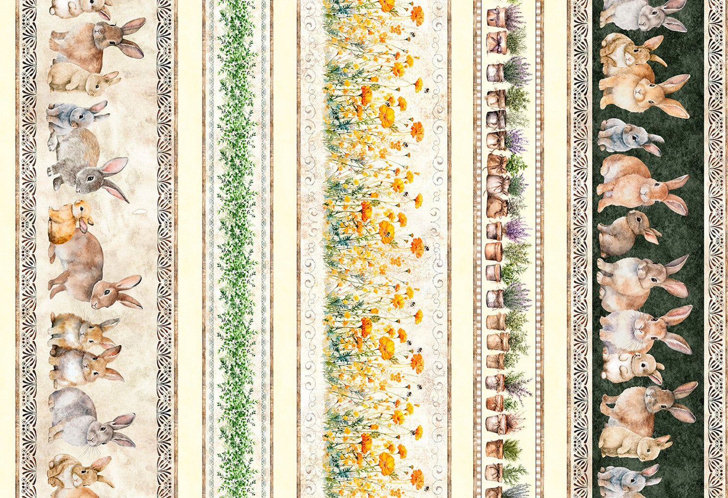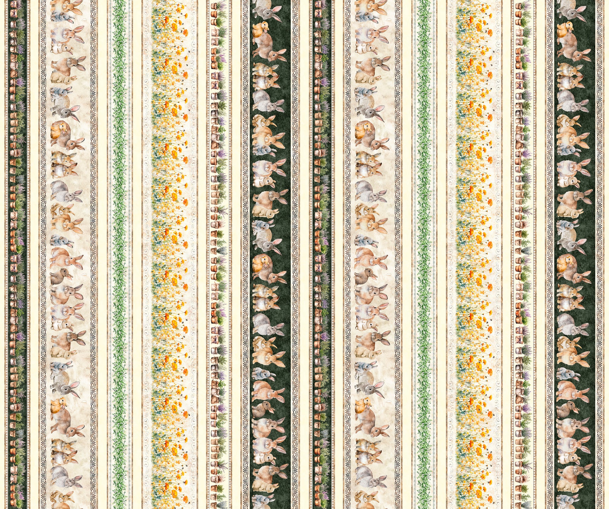 Quilting Treasures Easter Hunny Bunny Buniesy & Floral Border Stripe on multi