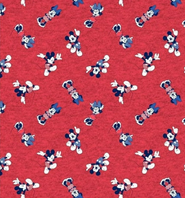 Mickey and Minnie all dressed up in red, white and blue. Fabric sold by the yard, multiple yards will be continuous cut. 100% cotton.