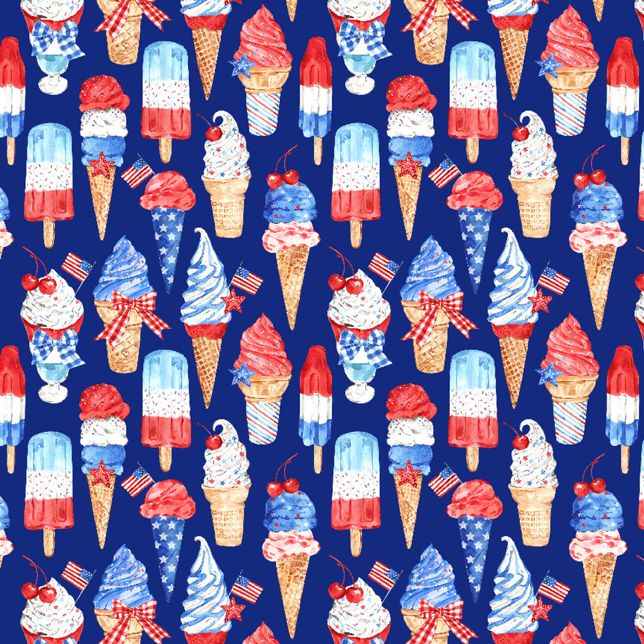 Timeless Treasures Patriotic Ice Cream on Blue 100% Cotton Fabric Price per Yard